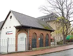 Unmittelbar an der Straße befindet sich ein kleines, inschriftlich auf das Jahr 1856 datiertes schlichtes Gebäude, das vermutlich als Hüttenkapelle errichtet wurde. Das aus Haustein[2] errichtete, eingeschossige Gebäude mit rechteckigem Grundriss entstand im Rundbogenstil. Die als Rundbogen gestalteten Fenster sind von Backsteinen eingefasst. Die Giebel des Baus sind mit Maskenmedaillons verziert.