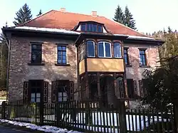 Das Gebäude wurde als Wohnhaus des höchsten Hüttenbeamten vor Ort in der Mitte des 18. Jahrhunderts[2] errichtet. Andere Angaben nennen den Anfang des 19. Jahrhunderts.[3] Bedeckt ist der zweigeschossige Bau von einem Walmdach. Im Jahr 1905 wurde vor das Gebäude ein Eingangsvorbau gesetzt, der einen Balkonaufsatz erhielt und mit Kerbschnittverzierungen versehen ist. Die ursprüngliche Verkleidung mit Schiefer war zumindest zeitweise durch eine im Erscheinungsbild gleiche Verkleidung aus Eternit ersetzt worden. Anfang des 21. Jahrhunderts wurde die Verkleidung entfernt. In der Literatur wird das Gebäude als Fachwerkhaus bezeichnet.[4][5]