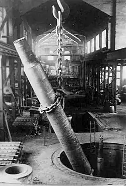 - 1930 820 mm Durchmesser, 6.000 mm Bahnlänge, 56 t Flüssigeisen