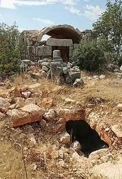 Der Ort bestand aus etwa 50 Häusern, von denen mindestens eins über eine Werksteinwölbung verfügt, die anderen haben Balkendecken, deren Auflagelöcher noch zu sehen sind. Einige davon, die in Polygonalbauweise gemauert sind, stammen aus der Kaiserzeit, andere wurden in frühbyzantinischer Zeit teilweise mit mehreren Geschossen erweitert. Der größte Teil der Häuser ist über noch stehende Türpfosten oder -rahmen zu identifizieren. Für die Wasserversorgung gab es zahlreiche unterirdische Zisternen.