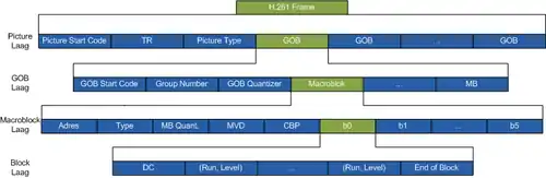 In H.261 wird eine maximale Verzögerungszeit für die Kompression und Dekompression von zusammen 150 ms festgelegt. H.261 kann nur progressiv eingelesene Bilder verarbeiten. Die Bilder werden als Luminanz (Y) und zwei Chrominanzkomponenten (Cr und Cb) kodiert, wobei die Chrominanzmatrizen ein Viertel der Größe der Luminanzmatrix besitzen (Farbunterabtastung 4:2:0). Das Verfahren unterstützt dabei zwei Bildformate. Diese sind CIF- und QCIF-Video-Frames, die eine Luminanz-Auflösung von 352×288 beziehungsweise 176×144 haben. H.261 ist ebenfalls rückwärtskompatibel für Abbildungsgraphiken (Standbilder) mit einer Auflösung der Luminanz von 704×576.