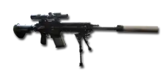 Das von Heckler & Koch hergestellte Schnellfeuergewehr HK417 ist eine Version des HK416 im Kaliber 7,62 × 51 mm NATO. In der Bundeswehr wird es als G27 geführt.