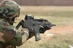- ↑ a b Shawn T. Jenkins, Douglas S. Lowrey: COMPARATIVE ANALYSIS OF CURRENT AND PLANNED SMALL ARMS WEAPON SYSTEMS. NAVAL POSTGRADUATE SCHOOL, 2004 ( vom 11. April 2016 im Internet Archive) (PDF; 1,3 MB)