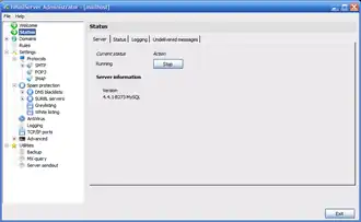 Screenshot von hMailServer Administrator, der graphischen Oberfläche zur Verwaltung des Mailservers. | |