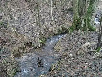 Das Einzugsgebiet ist überwiegend bewaldet, nur auf der linken Seite im Mündungsbereich dominiert Grünland.