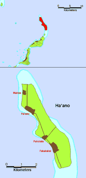 Nordöstlich befindet sich die Bethune Bank, die nächstgelegenen Inseln im Westen sind Luahoko und Puleieia. Nur ein schmaler Kanal trennt Haʻano vom südlich gelegenen Nukunamu. Auf der Insel liegen die vier Siedlungen Muitoa, Haʻano, Pukutala und Fakaka; der Inselteil Selila gilt als eigene Insel.