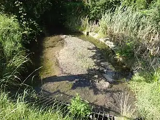 Der Haarbach vor der Eindolung beim Bahnhof Seen | ||