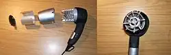 Vor dem Gebläse befindet sich bei manchen Modellen ein Fusselsieb. Dieses muss von Zeit zu Zeit gereinigt werden, da sonst der Haartrockner beschädigt werden kann bzw. dann zu wenig und zu heiße Luft liefert.