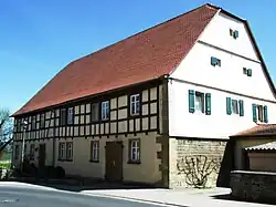 - Haus Nr. 32: Ehemaliger Pfarrlehenshof. Einfaches erdgeschossiges Wohnstallhaus in Fachwerk. Am Eckständer bezeichnet „ILST / 1807“ (Johann Leonhard Stemmer).[13]