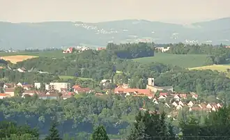 Blick auf Hacklberg mit der Pfarrkirche St. Konrad