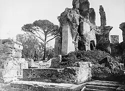 Annähernd auf freiem Feld konnte Hadrian seinen Ambitionen als Bauherr auf dem Landsitz bei Tibur, dessen allein baulich erschlossene Fläche sich heute über etwa 40 Hektar erstreckt, nachgehen. Das Gelände ist zum großen Teil zerstört, doch ist die Hadriansvilla Teil des UNESCO-Weltkulturerbes und nicht zuletzt aufgrund der eklektischen Zusammenstellung unterschiedlichster Baustile (römisch, griechisch, ägyptisch) einzigartig. Die Villa, ein ausgedehnter Palast und Alternativsitz der Regierung, erschien fast wie eine kleine Stadt. In der Planung und den Konstruktionstechniken wurden neuartige Experimente gewagt. Durch ihren Formenreichtum und die Pracht ihres Dekors wurde die Villa in der Folgezeit zu einer der Saatstätten für die Entwicklung von Kunst und Architektur.[97] Die neuen Möglichkeiten im Betonbau kamen auch hier vielfältig zum Einsatz, so zum Beispiel in Kuppeln und Halbkuppeln, in die man bei der Entwicklung neuartiger Formen der Raumausleuchtung variationsreiche Öffnungen schnitt.[98] In Verbindung mit stark wechselnden Raumgrößen und -gestaltungsformen sowie mit einer vielfältigen Innenausschmückung begleitete den Besucher bei einem Rundgang ein stetes Überraschungsmoment, das sich auch im Perspektivwechsel von den Innenräumen zu Ausblicken auf Gärten und Landschaft Geltung verschaffte. So setzte die Villa für die römische Architektur einen neuen Standard.[99]