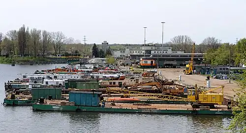 Das Haupthafenbecken, das dem Kohleumschlag dient, ist etwa 70.000 Quadratmeter groß. Unter der hier über eine Brücke geführten Hauptverkehrsstraße Ulica Modlińska können entlang des an dieser Stelle verbreiterten Kanals drei weitere, nur teilweise mit Kaimauern befestigte Hafenbecken erreicht werden. Am Hafen liegt das Kraftwerk Żerań, das so über den Wasserweg mit Kohle versorgt werden kann. Durch die Einleitung benutzten Prozesswassers aus dem Werk wird das Hafenwasser erwärmt. Die in den Kanal abgegebene Wärme führt dort zu einem vermehrten Fischbestand.