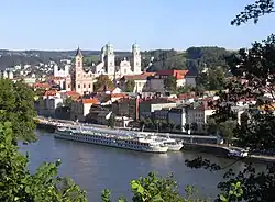 Der Hafen Passau an der Donau im Dreiländereck Bayern, Böhmen und Österreich ist einer der sechs Häfen von bayernhafen. Weitere Betreiber sind u. a. die Stadtwerke Passau[2] und die BayWa.