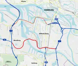 Erste Planungen für eine Ost-West-Richtung durch den Hamburger Hafen führende Autobahn stammen aus den 1930er Jahren (siehe auch: Reichsautobahn). Die nicht verwirklichten Pläne sahen einen Ring aus Stadtautobahnen um das Zentrum der Hansestadt vor.
