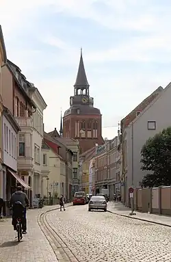 Die zentrale Straße aus Richtung Schwerin führt direkt zum Markt mit Sicht auf die fünfschiffige spätgotische Pfarrkirche St. Marien von 1508. Im Mittelalter stand westlich vor dem Stadtgraben das Hageböcker Tor. Die Straße war immer eine wichtige Geschäftsstraße mit zahlreichen Läden und Handwerksbetrieben und wurde zu einer wichtigen Einkaufsstraße der Stadt.