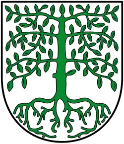 Blasonierung: „In Silber eine bewurzelte grüne Buche.“[22] |