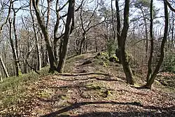 Zwischen Hauptgipfel und Schanzenkopf liegen am rechten Hang des engen Krebsbachtals die Burgställe der Randenburg und der Vergessenen Burg. Auf der gegenüberliegenden Bachseite, am Gipfel des Schanzenkopfes, befindet sich eine historische Ringwallanlage.