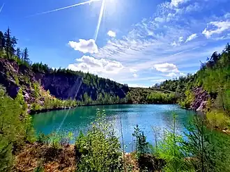 Nachdem der Schotter immer minderwertiger wurde, stellte der Betreiber im Jahr 2003 den regelmäßigen Abbau ein. Seit 2005 wurde nur noch unregelmäßig gebrochen, seit 2007 gar nicht mehr. Nach dem Rückbau der Silos, Förderbänder und Brecher wurden die Pumpen abgeschaltet und die unterste Sohle des nördlichen Steinbruchteils füllte sich mit Regenwasser. Der Hahnenkammsee entstand.