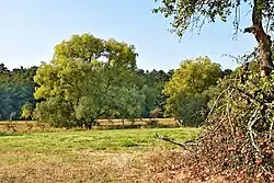Es umfasst einen rund 82,27 Hektar großen Waldbestand, welcher sich im Stadtgebiet von Seligenstadt und Mainhausen befindet.[18] Es besteht aus typischen und besonders reizvollen Landschaftselementen der holozänen Mainaue mit naturnahen, arten- und strukturreichen Laubwäldern sowie ausgedehnten Grünlandzügen mit wertvollen Feuchtwiesen. Sie werden von Werniggraben und Weihersbach durchflossen. Diese Bäche sind landschaftshistorisch gesehen Relikte nacheiszeitlicher Mainarme. Die Wiesen- und Grünlandnutzung ist weitgehend extensiviert worden.[19]