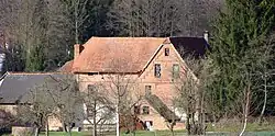 Ehemalige Getreidemühle in Hain-Gründau am nordwestlichen Fuß des Wetzsteins (252 m hoch), bis in die 1950er Jahre in Betrieb.