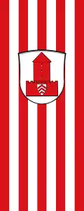 „Auf 8mal von Rot und Weiß längs geteiltem Flaggentuch das Gemeindewappen.“[14]
