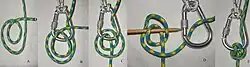 - Wird der Schleifknoten mit einem Sackstich hintersichert, entsteht der Bergrettungsknoten.