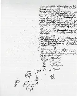Ein historisch wertvolles Dokument ist uns mit den leider undatierten Kartellpunkten der Hallenser Kränzchen überliefert. Da Südpreußen, das erst 1793 aus Teilen Großpolens gebildet worden war als Rekrutierungsgebiet der Schlesier genannt wird und sowohl die Kränzchen der Magdeburger und Halberstädter noch erwähnt werden, legte Friedrich Wilhelm König den Entstehungszeitraum auf 1793–1802 fest.[6] Anhand der Erwähnung der Halberstädter, die erst 1795 gestiftet wurden, hätte er den Zeitraum schon weiter eingrenzen können. Dies tat nach ihm Wilhelm Fabricius, der aufgrund der Annahme, die Magdeburger hätten erst 1799 angefangen, Sachsen in ihre Reihen aufzunehmen, den Zeitraum auf 1799–1801 einengte.[7] Da die Aufnahme von Sachsen bei den Magdeburger aber nachweislich schon mindestens seit Februar 1796 erfolgte, verwarf Erich Bauer diese Einschätzung und vermutete, das in Stammbucheinträgen zu findende Datum vom 12. Mai 1799 sei das Entstehungsdatum der Kartellpunkte.[8] Allerdings kann auch diese Datierung nicht korrekt sein, da ihm entgangen ist, dass das märkische Kränzchen erst Anfang September 1799 rekonstituiert wurde und daher im Mai 1799 wohl kaum Erwähnung in den Kartellpunkten gefunden hätte. Da andererseits die Halberstädter und Westfalen erwähnt sind, und letztere noch vor Stiftung der Halberstädter (21. Mai 1795) im März 1795 suspendiert hatten, kommt nur ein Zeitraum für die Entstehung der Kartellpunkte in Betracht. Sie müssen zwischen der Rekonstitution der Märker am 5. September 1799 und dem am 3. November 1801 veröffentlichten Aufruf zur Selbstanzeige der Kränzchen entstanden sein. Eine genauere Datierung muss weiteren Erkenntnissen vorbehalten bleiben. In den Kartellpunkten sicherten sich die Kränzchen gegenseitige Unterstützung zu und teilten die Kantone unter sich auf. Damit wurde jedem Kränzchen ein bestimmtes Gebiet zugeordnet aus dem es Nachwuchs rekrutieren konnte, wobei der Geburtsort maßgeblich war. Außerdem enthalten die Kartellpunkte Bestimmungen über die Beilegung von Streitigkeiten und die Ausführung von Partien und Duellen.