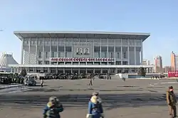 | Frontansicht des Hallenstadion Pjöngjang | ||