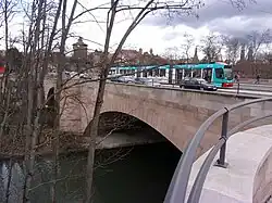 Über die Brücke verkehren die Straßenbahnlinien 4 von Gibitzenhof nach Am Wegfeld und 6 vom Dokuzentrum zum Westfriedhof. Für die Linie 4 wird die Verlängerung als Stadt-Umland-Bahn bis Erlangen und Herzogenaurach geplant. Im Nahverkehrsentwicklungsplan 2025 ist zudem die Wiedererrichtung der nördlichen Altstadtquerung über das Rathaus zum Rathenauplatz mit dem hohen Nutzen-Kosten-Verhältnis von 4,59 enthalten.[9] Der östliche Radweg ist Teil des Nürnberger Haupt-Radwegenetzes.[10]