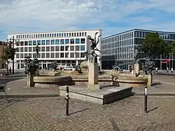 - ↑ Bernd Göbel, Hans-Georg Sehrt: Der Göbel-Brunnen. Ursprung, Zeitlauf, Turbulenzen. Mit einem Vorwort vom damaligen Oberbürgermeister Klaus Peter Rauen. Halle (Saale) 1998, ohne ISBN, im Bestand der DNB