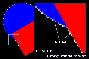 - In GIF-Bildern wird der Hintergrund als transparent definiert, der Übergang zum Hintergrund jedoch nicht, da es in diesem Format keine abgestufte Transparenz gibt. Wird das Bild auf einer Webseite vor anderem Hintergrund dargestellt, tritt der Halo-Effekt auf.