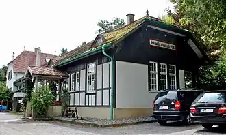 Er ist mit einem eingeschossigen Empfangsgebäude mit Magazin, Warteraum und Schalter sowie mit einem im Osten angebauten, zweigeschossigen Dienstwohnungsbau ausgeführt. Zur ehemaligen Gleisseite hin ist eine vierjochige Veranda angebaut, ursprünglich zum Schutz der wartenden Fahrgäste. Westlich bestand ein Toilettenbau. Am Gebäude sind Stilelemente des Jugendstils zu erkennen.