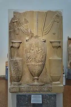 - ↑ Inscriptiones Graecae (IG) II² 5601. Ursula Knigge: Der Kerameikos von Athen. Führung durch Ausgrabungen und Geschichte. Krene-Verlag, Athen 1988, S. 154 mit Abb. 151b; Christoph W. Clairmont: Classical Attic Tombstones. Katalogband 2, 1993, S. 652–653 Nr. 2710.