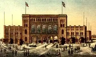 Der Venloer Bahnhof ging am 1. Dezember 1872 als Endpunkt der über die Elbbrücken führenden Bahnstrecke in Betrieb.[1] Bauherr war die Köln-Mindener Eisenbahn-Gesellschaft (CME), die hier ihre Hamburg-Venloer Bahn, den deutschen Teil der internationalen Paris-Hamburger Bahn, enden lassen wollte. Da deren Teilstrecke zwischen Bremen und Harburg noch nicht gebaut war, bildete die Teilstrecke von Harburg nach Hamburg für zwei Jahre die lang ersehnte Fortsetzung der Bahnstrecke Lehrte–Harburg von ihrem bisherigen Endpunkt im hannoverschen Harburg. Ab dem 1. Juni 1874 war auch die Strecke zwischen Bremen und Harburg fertig und damit die direkte Verbindung vom Ruhrgebiet nach Hamburg, heute Bahnstrecke Wanne-Eickel–Hamburg genannt. Offiziell wurde der Venloer Bahnhof 1892 in Hannoverscher Bahnhof umbenannt. Daneben existierten im Volksmund die Bezeichnung Hannöverscher Bahnhof sowie eher scherzhaft Pariser Bahnhof.[2] Vielleicht war diese Differenzierung aber auch sinnvoll, denn der nächste, im preußischen Harburg gelegene, Bahnhof nannte sich ebenfalls „Hannoverscher Bahnhof“ (bzw. „Staatsbahnhof“ von 1847).
