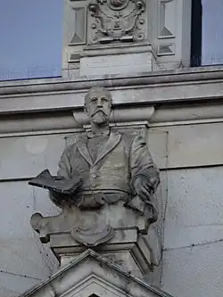 In diesen Figuren hat der Bildhauer Aloys Denoth bekannte Persönlichkeiten jener Zeit porträtiert. Heinz-Jürgen Brandt stellt in seinem Buch dar, dass diese Figurenreihe von den Zeitgenossen als willkommene Belebung der Fassade und als Darstellung des bürgerlichen Fleißes lebhaft begrüßt wurde.[11]
