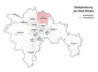 - ↑ Altersstruktur und Bevölkerungsbestand nach Stadtteilen. (PDF; 11,4 MB) Weiden in der Oberpfalz, S. 1, abgerufen am 15. November 2024.