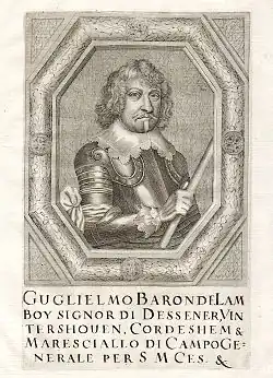 Der Bezirk ist nach dem General Guillaume de Lamboy aus den Spanischen Niederlanden (heute: Belgien) benannt, der im Dreißigjährigen Krieg 1636 die Festung Hanau belagerte. Die Belagerung wurde durch ein hessisch-schwedisches Entsatzheer unter Landgraf Wilhelm V. von Hessen-Kassel (1627–1637) beendet, der mit einer Tochter des Grafen Philipp Ludwig II. von Hanau-Münzenberg, Amalie Elisabeth, verheiratet war. In Erinnerung an das Ende der Belagerung wurden jährlich Dankgottesdienste abgehalten, aus denen sich ab 1800 das Lamboyfest entwickelte, das zum Teil in dem damals noch bewaldeten Bereich gefeiert wurde, den heute das „Lamboyviertel“ einnimmt, seit einigen Jahren aber in der historischen Altstadt von Hanau um das Goldschmiedehaus. Auf dem Gebiet des heutigen Lamboyviertels fand am 30./31. Oktober 1813 ein Teil der Schlacht bei Hanau statt, Napoleons letztem Sieg.