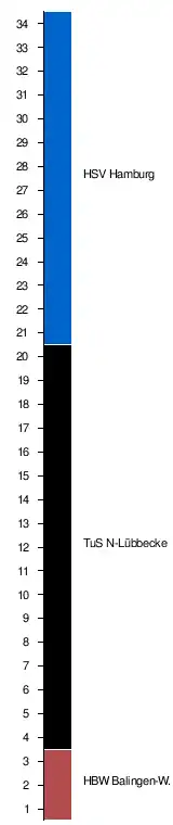 | TuS N-Lübbecke | 23:35 | 23:33 | 19:25 | 19:30 | 25:32 | 28:29 | 26:26 | 29:29 | 25:28 | 28:29 | 24:24 | 22:30 | 23:22 | 25:24 | 22:24 | 26:27 | 27:30 | |