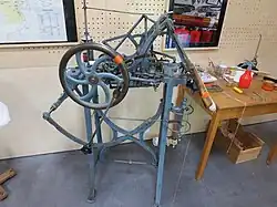 Die Bewegung zwischen je zwei Nadelstichen wird dem Rahmen mit Hilfe eines Storchschnabels (Pantographen) übertragen.