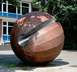 Unmittelbar vor der Schule wurde 2002 die Skulptur „Kugel ‚arcanum rerum‘“ aufgebaut; erschaffen wurde sie von Jörg Bochow, Universität Giebichenstein. Dabei handelt es sich um eine Kugel aus Eisen und Edelstahl, die sehr leicht in Schwingungen versetzt werden kann; dadurch ertönt aus dem Inneren der Kugel ein Glockenspiel.[4][5]