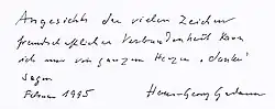 Hans-Georg Gadamer 1995: Handschriftlicher Dank für einen Glückwunsch zum 95. Geburtstag.