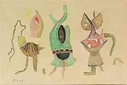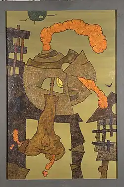 Der Surrealismus der 1930er und der Nachkriegsjahre prägten das Schaffen von Hans-Ulrich Ernst. Die Vorbilder waren der junge Joan Miró, Salvador Dalí und sein Namenskollege Max Ernst.[11] Als Autodidakt schuf Hans-Ulrich Ernst in den 1950er Jahren erste Bilder, zunächst noch gegenständlicher Natur. Dazu zählt das Selbstporträt, das 1954 entstand. Später löste er sich vom eigentlichen Abbild, in der Überzeugung, das Nachahmen äusserer Erscheinungen habe nichts mit Kunst zu tun, diese sei vielmehr Dokumentation der eigenen individuellen Geisteshaltung.[12][13]
