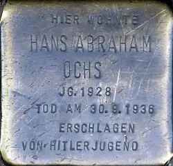 - ↑ museenkoeln.de Stolperstein für Hans Abraham Ochs im Römerpark, abgerufen am 4. Oktober 2015.