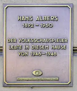 - ↑ Manfred Wirth: Hans Albers - Biografie. In: Hans Albers Fanseite. Hrsg. Manfred Wirth, 19. Februar 2021, abgerufen am 19. Juli 2021.