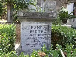 Hans Barth ist, ebenso wie seine 1931 verstorbene Ehefrau Ida Lamparter, auf dem Protestantischen Friedhof in Rom bestattet.