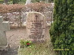 - Hans Bernd von Haeftens Witwe Barbara von Haeften hat auf dem St. Annen-Kirchhof in Berlin-Dahlem ihre letzte Ruhestätte gefunden. Ihr Grabstein erinnert zugleich an ihren ermordeten Ehemann.