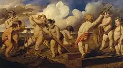 - Putten beim Bahnbau (Wien, Österreichische Galerie Belvedere), um 1876, Öl auf Leinwand, 157 × 280 cm