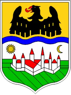 1950 gestaltete Hans Diplich das Wappen der Landsmannschaft der Donauschwaben. Ein rot bewehrter aufsteigender schwarzer Adler auf goldenem Grund, geteilt durch einen blauen Wellenbalken. In der unteren Hälfte befindet sich auf grünem Ackerboden eine sechstürmige weiße Vauban-Festung mit einer Ringmauer und rot bedachten Gebäuden. Links im Wappen ist die strahlende Sonne, rechts der abnehmende Mond zu sehen.