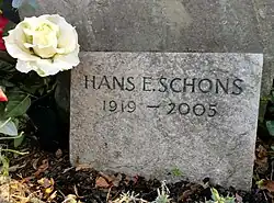 Hans E. Schons hinterließ seine Ehefrau. Schons hat zwei Söhne, darunter den Duisburger Rechtsanwalt und ehemaligen Vizepräsidenten der Rechtsanwaltskammer Düsseldorf Herbert P. Schons[2] und eine Tochter. Er fand seine letzte Ruhe auf dem Friedhof Schöneberg III in der Stubenrauchstraße in Berlin-Friedenau (Abt. 27, Nr. 5).