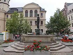 - ↑ Werner Galle, Werner Horn: Elsterwerdas Plätze im Wandel der Zeit. In: Arbeitsgemeinschaft für Heimatkunde e. V. Bad Liebenwerda (Hrsg.): Heimatkalender – Für das Land zwischen Elbe und Elster. Nr. 56. Gräser Verlag, Großenhain 2004, ISBN 3-932913-47-7, S. 99–116.